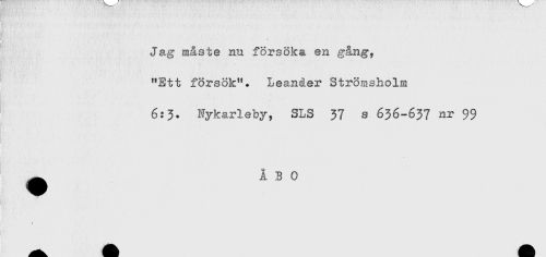 //// Jag måste nu försöka en gång, //// "Ett försök". Leanåer Strömsholm //// * //// 6:3. Nykarleby, SLS 37 s 636-637 nr 99 //// - //// ^ ÅBO //// * ////