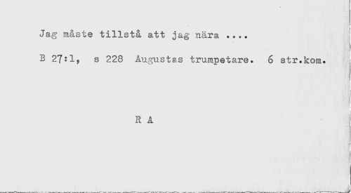 //// Jag måste tillstå att jag nära .... //// ( //// B 27:1, s 228 Augustas trumpetare. 6 str.kom. //// j //// i //// t //// R A //// : //// - ' ' s ' '^f ////