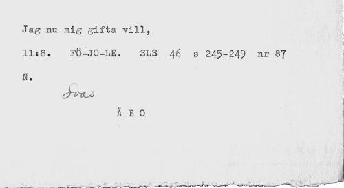 //// Jag nu mig gifta vill, i //// t //// 11:8. FÖ-JO-LE. SLS 46 s 245-249 nr 87 //// N. //// A B 0 //// < ////
