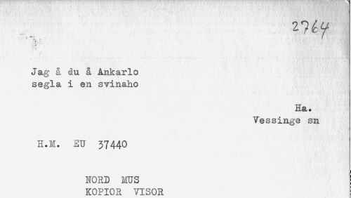 //// - J //// Jag å du å Ankarlo //// segla i en svinaho //// Ha. //// Ve ssinge sn //// H.H. EU 37440 //// NORD MUS //// KOPIOR VISOR ////