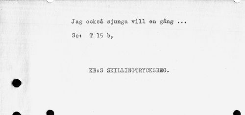 //// Jag också sjunga vill en gång ... //// Se: T 15 b, //// KB:S SKILLINGTRYCKSREG. ////