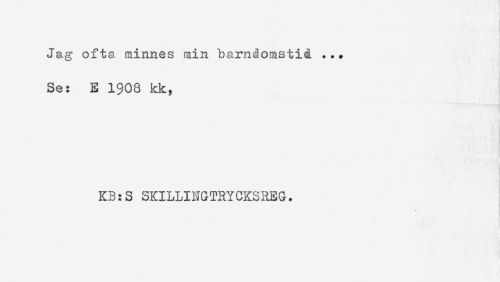 //// Jag ofta minnes min barndomstid ... //// Se: E 1$08 kk, //// KB:S SKILLINGTRYCKSREG. ////