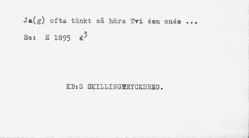 //// Ja(g) ofta. tänkt så hära Tvi den onde ... //// Se: E 1895 //// KB:S SKILLINGTRYCKSREG. ////