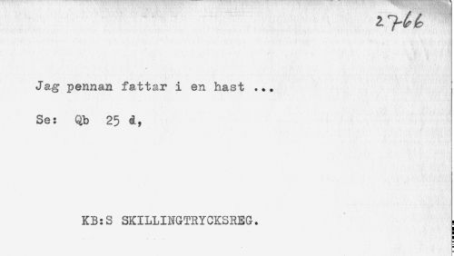 //// Jag pennan fattar i en hast ... //// Se: Qb 25 å, //// KB:S SKILUNGTRYCKSREG. ; //// n ////