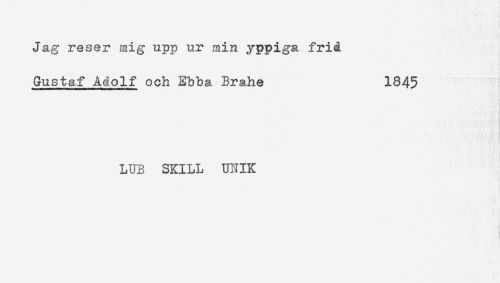 //// Jag reser mig upp ur min yppiga frid //// Gustaf Adolf och Ebba Brahe 1845 //// LUB SKILL UNIK ////