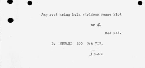 //// Jag rest kring hela världens runne klot //// nr Al //// i //// med mel. //// * //// S. EDUARD 200 G:A VIS. ////