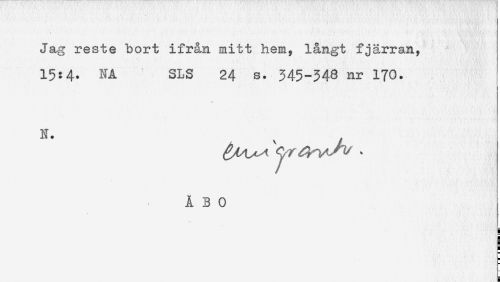 //// Jag reste bort ifrån mitt heta, långt fjärran, //// 15:4. NA SLS 24 s. 345-348 nr 170. //// N. //// ÅBO //// g //// H ////