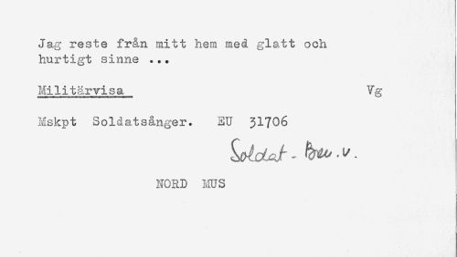 //// Jag reste från mitt hem med glatt och //// hurtigt sinne ... //// Militårvisa Vg //// Mskpt Soldatsånger* EU 31706 //// NORD MUS ////
