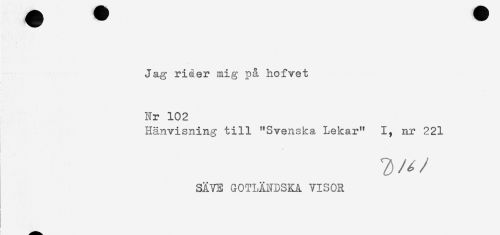 //// Jag rider mig på hofvet //// Nr 102 //// Hånvisning till "Svenska Lekar" I, nr 221 //// SÄYE GOTLÄNDSKA VISOR ////