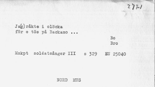 //// 2 72*/ //// Jaj^) råk te i olöcka //// för e tös på Backamo ... //// Bo //// Bro //// Mskpt solåatsånger III s 32$ EU 25040 //// NORD MUS ////