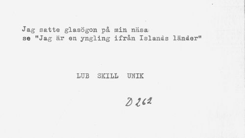 //// Jag satte glasögon på min näsa //// se "Jag är en yngling ifrån Islands länder" //// LUB SKILL UNIK ////