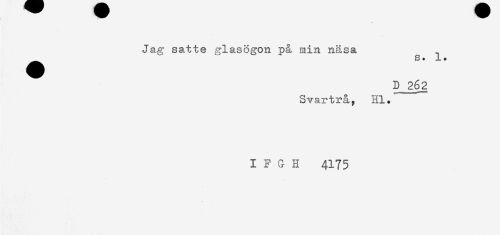 //// Jag satte glasögon p& min näsa //// ^^ s. 1. //// D 262 //// Svartrå, Hl. //// I F G H 4175 ////