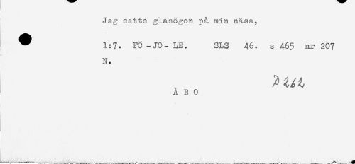 //// Jag satte glasögon p& min näsa, //// ! ^ 1:7. FO-JO-LE. SLS 46. s 465 nr 207 //// 'i**' //// N. //// ÅBO ////