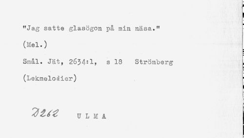 //// r //// H //// "Jag satte glasögon på min näsa." //// (Hel.) //// H //// H //// H) //// Smål. Jät, 2634:1, a 18 Strömberg //// (Lekmelodier) , f //// t //// r //// ^ //// r //// ^^^^ U L M A I ////