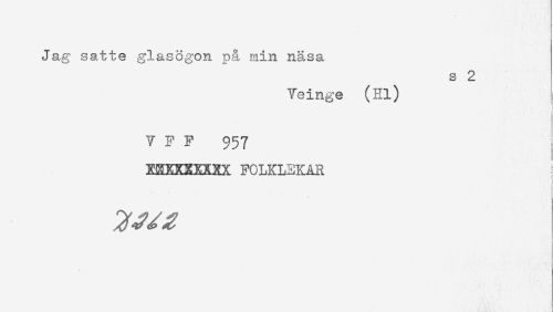 //// Jag satte glasögon på ain näsa //// s 2 //// Ve inge (Hl) //// v F F 957 //// XEKXXXXXX FOLKLEKAR ////