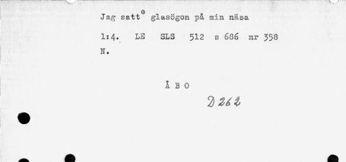 //// Q //// Jag satt glasögon på min näsa //// 1:4. LE SLS 512 s 686 nr 358 //// * //// N. //// i //// ÅBO ////