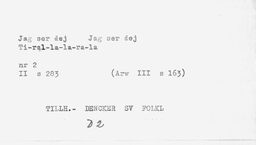//// Jag ser dej Jag ser dej //// Ti-ral-la-la-ra-la //// nr 2 //// 11 s 283 (Arw 111 s 163) //// TILLH.- DENCKER SV B^OLKL //// 3 a ////