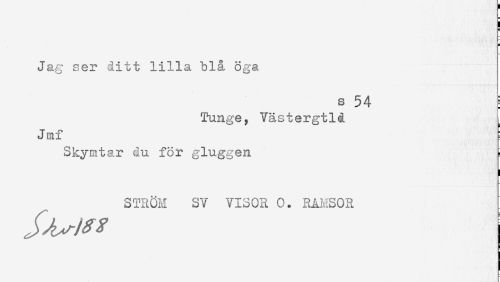 //// Jag ser ditt lilla blå öga //// s 54 //// Tunge, Västergtlå //// Jmf //// Skymtar du för gluggen ^ //// ! //// STRÖM SV VISOR O. RAMSOR //// J^yw j ////