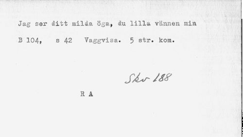 //// Jag ser ditt milda öga, du lilla vännen min //// B 104? s 42 Vaggvisa. 5 str. kom. //// R A ////