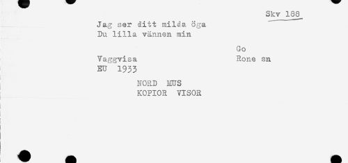 //// Skv 188 //// Jag ser ditt milda öga //// Du lilla vännen min //// Go //// Vaggvisa Rone sn //// EU 1933 //// NORD MUS //// KOPIOR VISOR ////