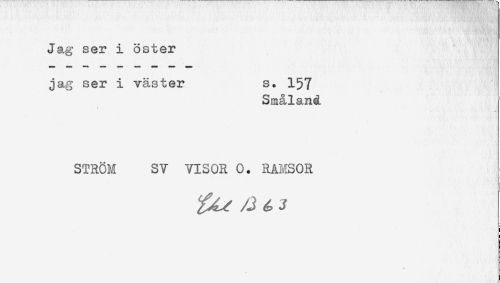 //// Jag ser i öster //// jag ser i väster s. 157 //// Smålanå //// STRÖM SY VISOR 0. RAMSOR ////