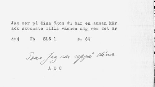 //// Jag ser på dina ögon du har en annan kär ! //// i //// ack skönaste lilla vännen säg vem det är E //// t- //// < //// i //// 4:4 Ob SLS 1 s. 69 //// ÅBO ! ////