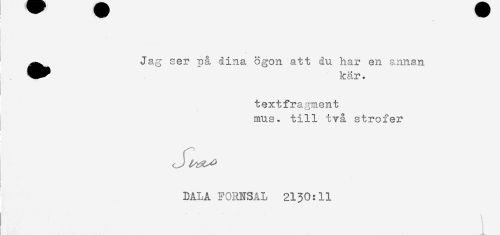 //// ..... //// * //// ^^ Jag ser på dina ögon att du har en annan //// ^^ kår * //// textfragment //// mus. till två strofer //// rJ //// t //// i //// DALA FORNSAL 2130:11 //// < ////