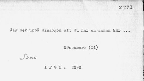 //// Jag ser uppå dinaögon att du har en annan kär ... //// Nössenark (Dl) //// IFGH: 2898 ////