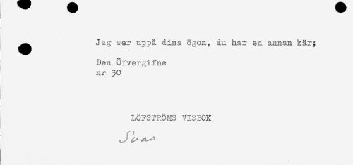 //// j ^^ Jag ser uppå dina ögon, åu har en annan kär; //// Den Ofvergifne //// ' nr 30 //// LÖFSTRONS VISBOK ////