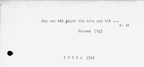 //// t //// K . .'t .', ' ' ' \ '. . / '' - ' ' *, . - s < ". 't , . . ' -. ' - ^ *- < //// B?; -- ' //// ' . ' * -* . ^ //// i //// Jag ser väl jegel båd vita och blå ... //// s. 41 //// Horred (Vg) //// ^ IFGH: 33I8 ////