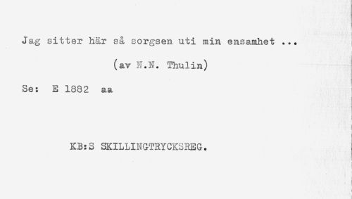//// Jag sitter här så sorgsen uti min ensamhet ... //// (av N.N. Thulin) //// Se: E 1882 aa //// ! //// ! //// KB:S SKILLINGTRYCKSREG. //// < //// t //// ) //// . H .. _ . , . ^ ////