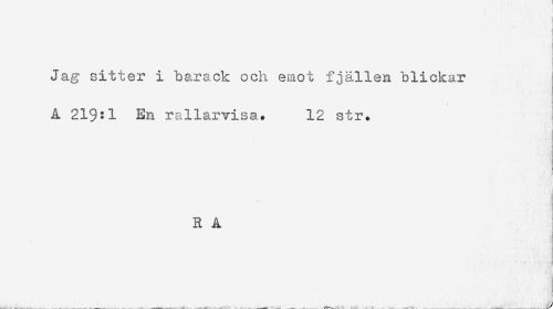 //// < //// I //// Jag sitter i barack och emot fjällen blickar //// ) //// Å 219:1 En rallarvisa. 12 str. //// ' i //// R A //// ^ a! //// . .. .. —.. v_______. r--^. . .. —. ... ////