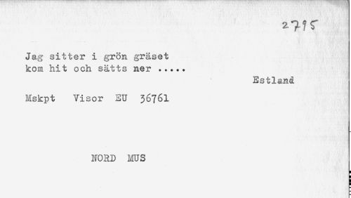 //// Jag sitter i grön gräset //// kom hit och sätts ner ..... //// Estland //// Mskpt Visor EU 36761 //// NORD MUS ////
