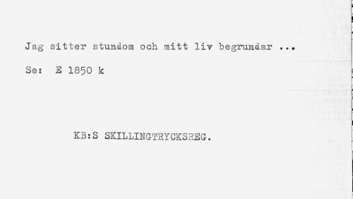 //// Jag sitter stundom och mitt liv begrundar ... //// Se: E 1850 k //// KR:S SKILLINGTRYCKSREG. ////