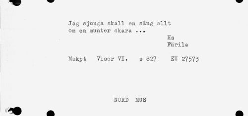 //// Jag sjunga skall en sång allt //// om en munter skara ... //// Hs //// Färila //// Mskpt Visor VI. s 827 EU 27573 //// NORD nus ////