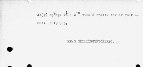 //// ' //// Ja(g) sjonga vell e visa & tralla för er fölk .. //// SSe: E 1909 p, //// KB:S SKILLINGTRYCKSREG. ////