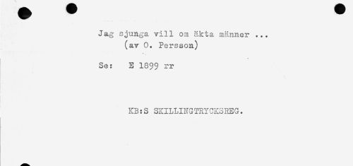 //// Jag sjunga vill om äkta männer ... //// (av 0. Persson) //// Se: E 18$$ rr //// KB:S SKILLINGTRYCKSREG. ////