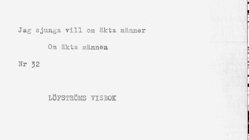 //// [ //// Jag sjunga vill om äkta månner //// Om åkta männen ^ //// Nr 32 ! //// LÖFSTRCMS VISBOK ////