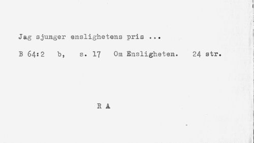 //// t //// i //// * //// Jag sjunger enslighetens pris ... //// ! //// t //// B 64:2 b, s. 17 Om Ensligheten. 24 str. //// i //// ! //// f //// f //// t //// t //// t //// ! //// t //// R A //// < ////