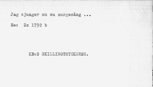 //// Ja.g sjunger nu en sorgesång ... //// Se: Zz 1792 b //// ^ - < //// KB:S SKILLINGTRYCKSREG. ////