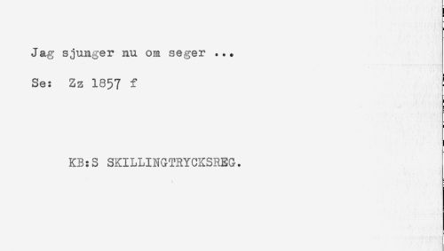 //// Jag sjunger nu om seger ... //// Se: Zz 1857 f //// KB:S SKILLINGTRYCKSREG. ////