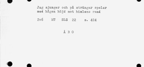 //// Jag sjunger och på strängar spelar //// med hågen höjd mot himlens ranA //// ! //// 2:6 MU SLS 22 s. 424 //// ÅBO ////