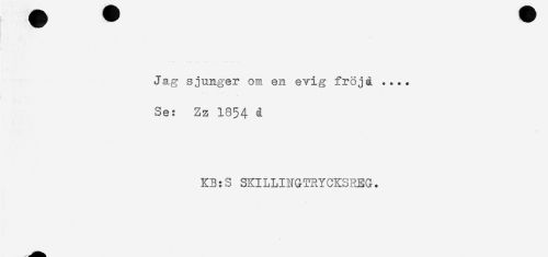 //// Jag sjunger om en evig frojå .... //// I ' . s //// Se: Zz 1854 d //// KB:S SKILLINGTRYCKSREG. ////