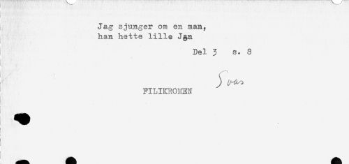 //// Jag- sjunger om en man, //// han hette lille Jgn //// ! Del 3 s. 8 //// t. r //// FILIEROLtEN //// ! //// j ////