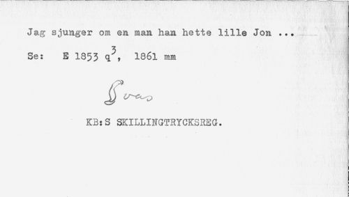 //// Jag sjunger om en man han hette lille Jon ... //// Se: E 1853 <1* IS6l mm //// KB:S SKILLINGTRYCKSI^EG. ////