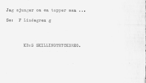 //// Jag sjunger om en tapper man ... //// Se: F Lindegren g //// KB:S SKILLINGTRYCKSREG. ////