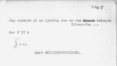 //// Jag sjunger på en ljuvlig ton oa den hkxK±E bekante //// Silver-Jon ... //// Se: P 57 b //// KB:S SKILLINGTRYCKS3EG. //// t -'. ////