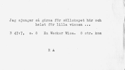 //// Jag sjunger så garna f3r sällskapet här och //// helst för lilla vännen ... //// B 47:7, s. 8 En Wacker Wisa. 8 str. kom //// RA ////