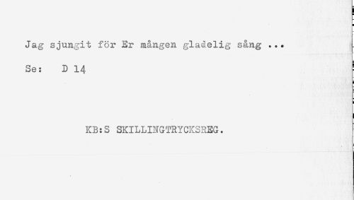 //// ) //// H //// Jag sjungit för Er mången gladelig sång ... //// Se: D 14 //// KB:S SKILLING^YCKSREG. ////