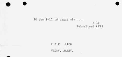 //// Jä ska. lull på ongen min .... //// s 11 //// Lekvattnet (Vi) //// V F F 1428 //// VAGGV. BARNV. ////
